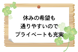 年2回の面談や毎月のシフト希望調査で、有給休暇・休みの希望を申請できます。