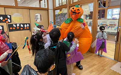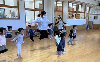 自然に囲まれた広い園舎で、自然と触れ合いながらのびのびと保育ができます。